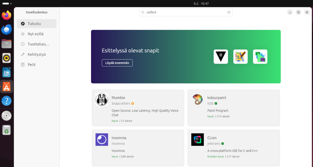 Käynnistä App Center. Kirjoita Calibre hakukenttään.