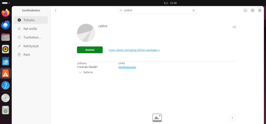 Valitse Calibre-Debian-Paketti ja valitse sitten asenna.