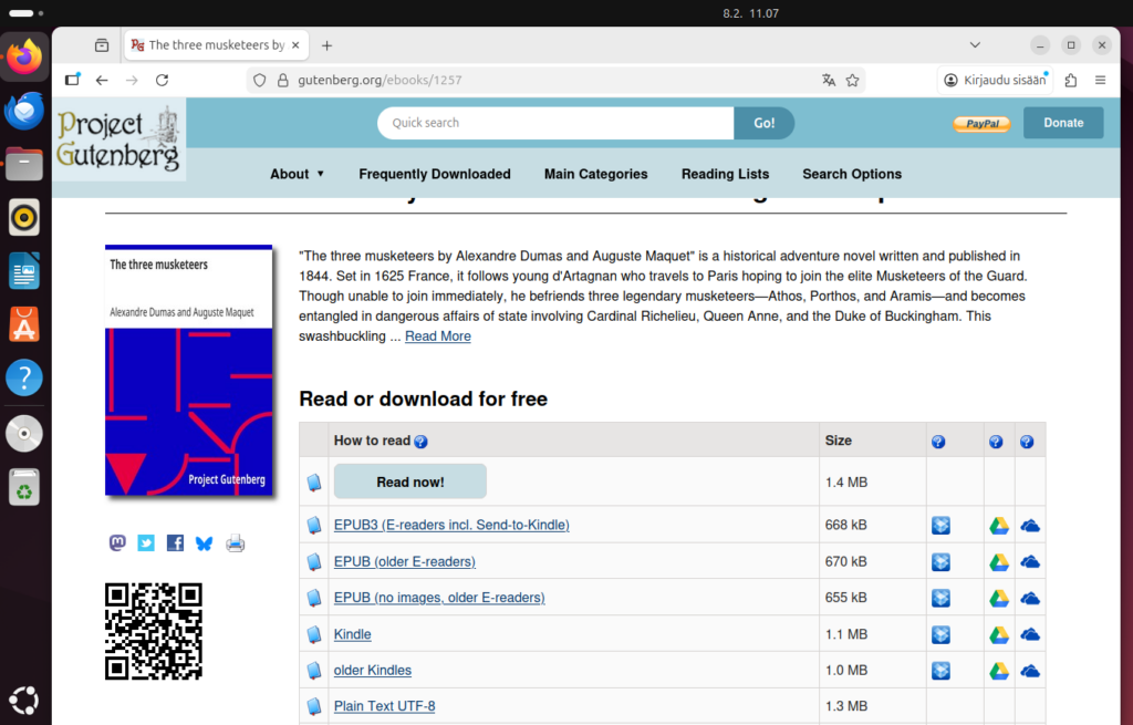 Kirjoita hakukenttään haluamasi kirjan nimi. Tässä esimerkkinä Kolme muskettisoturia. Lataa epub3