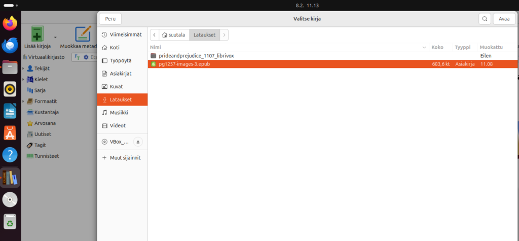 Valitse lataukset-kansio, ja sieltä oikea tiedosto. Klikkaa avaa.